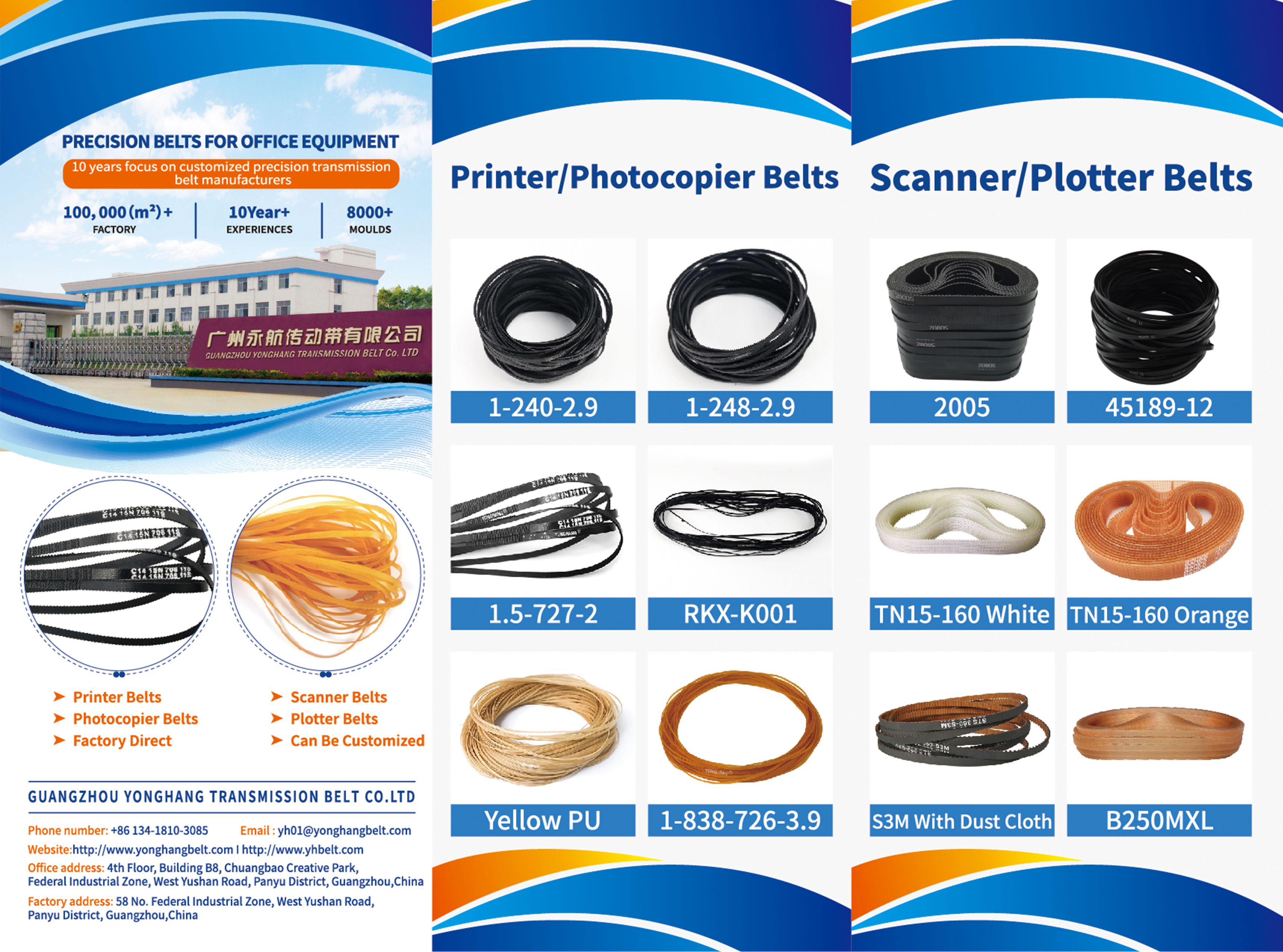 Printer belt Wholesale Suppliers - China Yonghang,20 years factory been located in Panyu, Guangzhou, offering over 10000+specifications and models. We possess molds for multiple printer brands, including compatible belts for prin